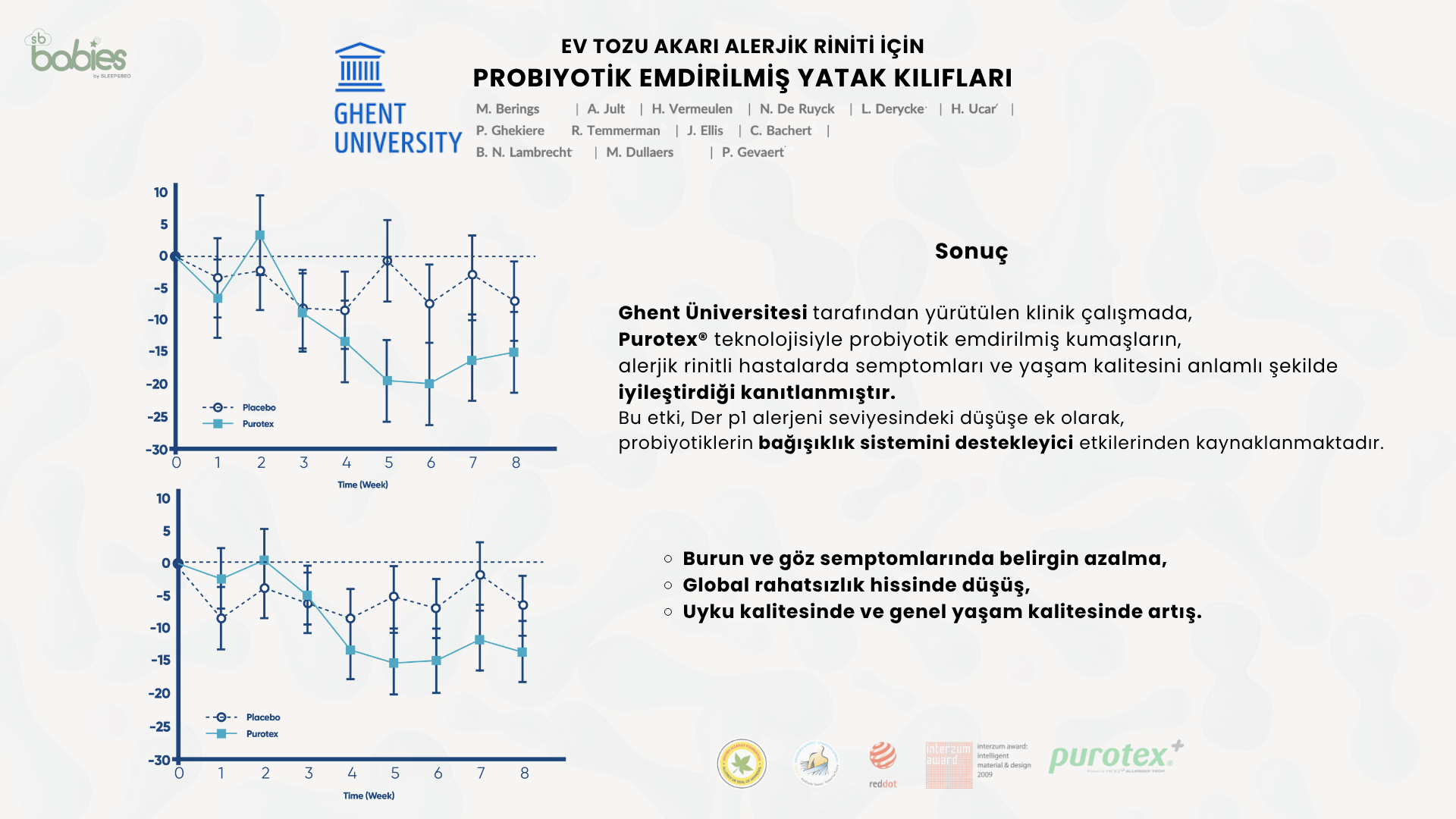 Purotex teknolojisi ile yatak kumaşındaki nano baloncuklar hareketle patlar, probiyotik üreterek alerjenleri ve ev tozu akarlarını yok eder. Bebeğin için her nefeste temiz ve sağlıklı bir uyku ortamı!